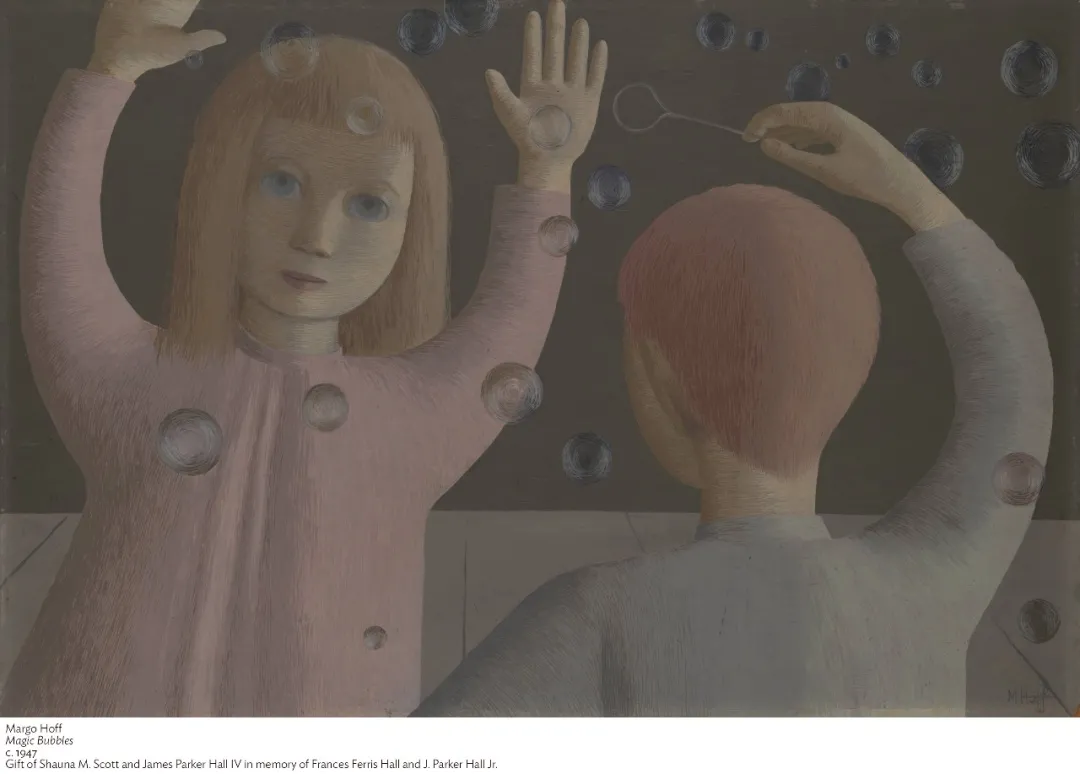 在1940年代末期,霍夫的作品中经常出现儿童。她试图捕捉“对大与小的体验,他们对这个巨大世界的感受”。这样的主题或许反映了她自己作为一个母亲的生活——她的女儿米娅·布赫(Mia Buehr)出生在1942年,表现两个孩子吹泡泡的画作《魔法泡泡》(Magic Bubbles)中的女孩造型很可能就是受到米娅的启发。