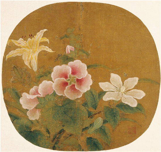 夏天温度高,水分足,各种花草树木生长旺盛,生机勃勃,田野里的牵牛花、凌霄花、百合花等竞相怒放,争奇斗艳。南宋画家鲁宗贵的《夏卉骈芳图》就集中描绘了几种花卉。此图画了三种夏天常见的花卉:粉红鲜艳的蜀葵,洁白无瑕的栀子和嫩黄清雅的萱花。在夏日的暖风里,姹紫嫣红,群芳争艳,或拔蕊绽放,或含苞欲放,芬芳馥郁,花香袭人,沁人心脾。花叶千姿百态,花色绚丽多彩,前后穿插,顾盼掩映,优美和谐地融洽在一个清芬芳馨的情调里,为炎炎夏日增添了烂漫色彩,也为人们送来幽香清爽,涤尘洗暑,悦目清心。清乾隆帝专为此图御题五言诗一首:“夏卉弗注名,而却含至理。白白与红红,黄忘忧以喜。分明诠五千,无名名之始”。