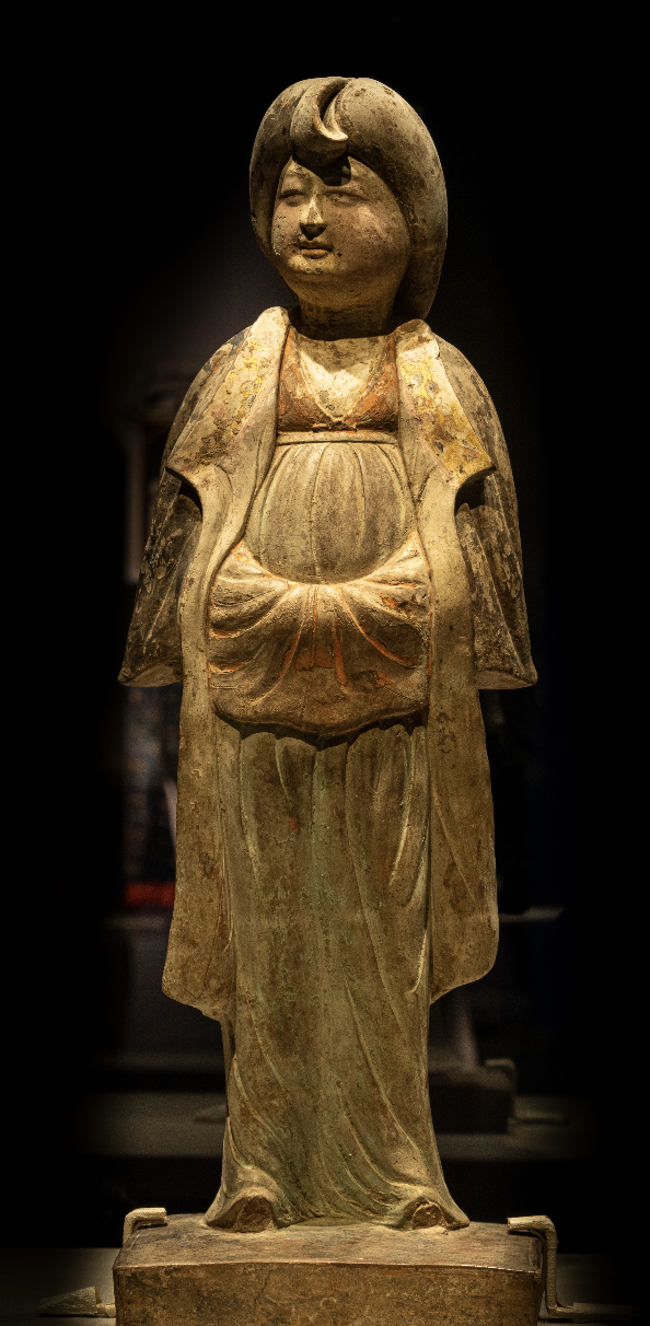 彩绘灰陶女俑 唐