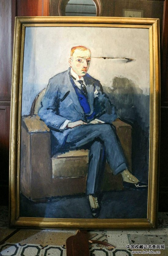 2020 年 8 月 4 日贝鲁特港口爆炸后,荷兰裔法国画家 Kees Van Dongen 创作的尼可拉斯·易卜拉欣·苏尔索克( Nicolas Ibrahim Sursock )被撕毁的肖像。
