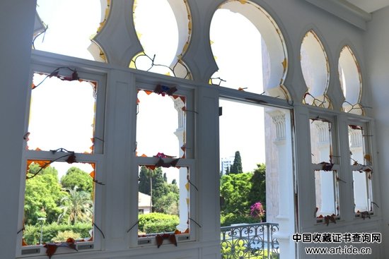 在贝鲁特爆炸中遭受重创的苏尔索克宫别墅正面的所有彩色玻璃窗都被震掉了