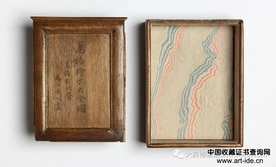 盛装《万物绘本大全》版画画稿的定制木盒,刻有作品名及艺术家名,泡桐木、纸与锦缎,1820-40年代
