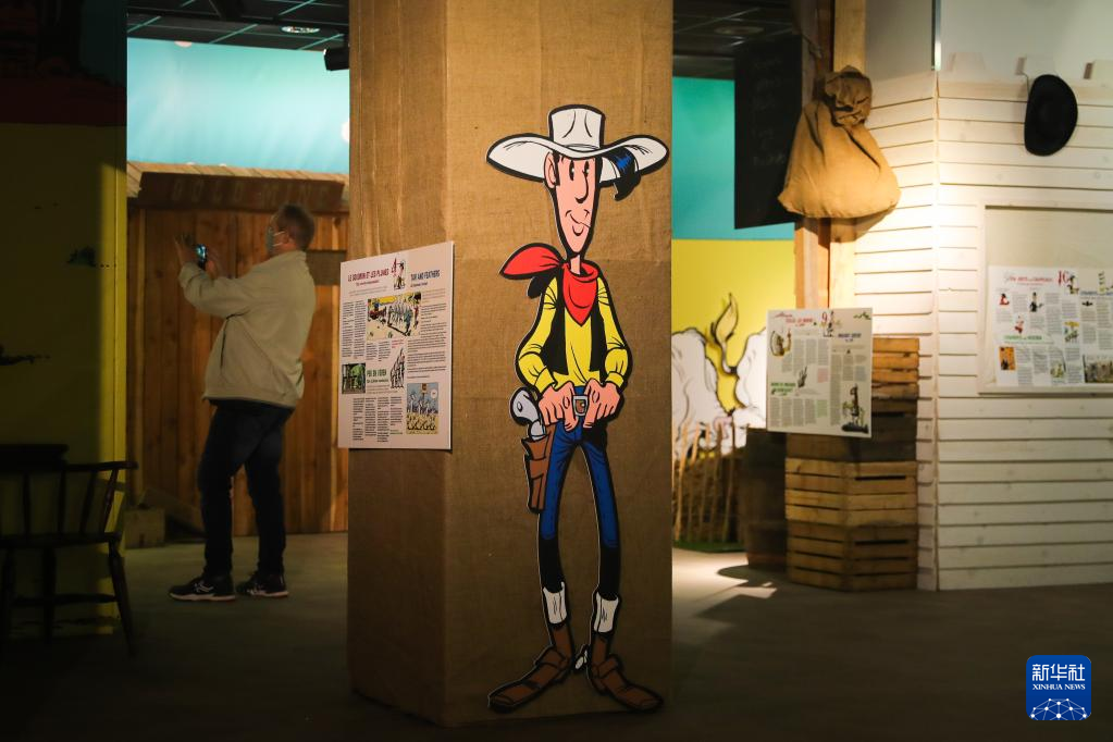 9月16日,参观者在比利时布鲁塞尔观看《幸运的卢克》主题漫画展。比利时布鲁塞尔日前正在举行每年一度的漫画节。为保证民众安全参观,主办方采取了一系列防疫措施,包括在分散在城市中的多个场地举办主题漫画展、在不同时间地点举行漫画家现场签售活动等。今年的布鲁塞尔漫画节将持续至10月10日。新华社记者 郑焕松 摄