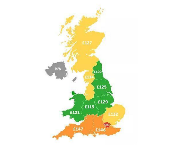 根据调查网站savethestudent的数据,2021年,全英平均周房租146英镑。伦敦房租全英国最贵,平均周租金高达152英镑,整体来看南部房租更贵。