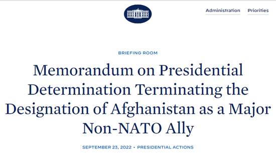 拜登决定终止阿富汗作为美国“非北约主要盟国”的地位。
