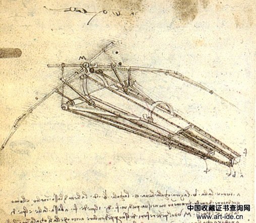 扑翼机设计草图(达芬奇作品欣赏)
