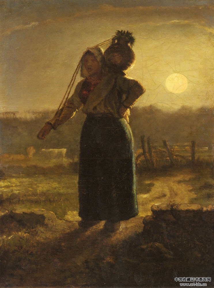 让·弗朗索瓦·米勒 Jean-Francois Millet 〔1814-1875年〕,是法国近代绘画史上最受人民爱戴的画家。他那纯朴亲切的艺术语言,尤其被广大法国农民所喜爱。他出身于一个农民世家,幼年时便显露出绘画的天才,受到老师的鼓励而立志学习绘画。