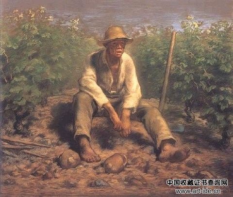 坐在地上的农民(米勒书画作品欣赏)