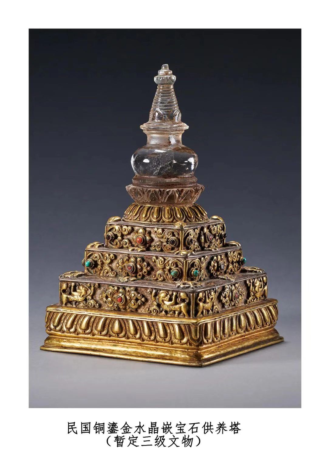 民国铜鎏金水晶嵌宝石供养塔 暂定三级文物 罗征 摄 国家文物局供图