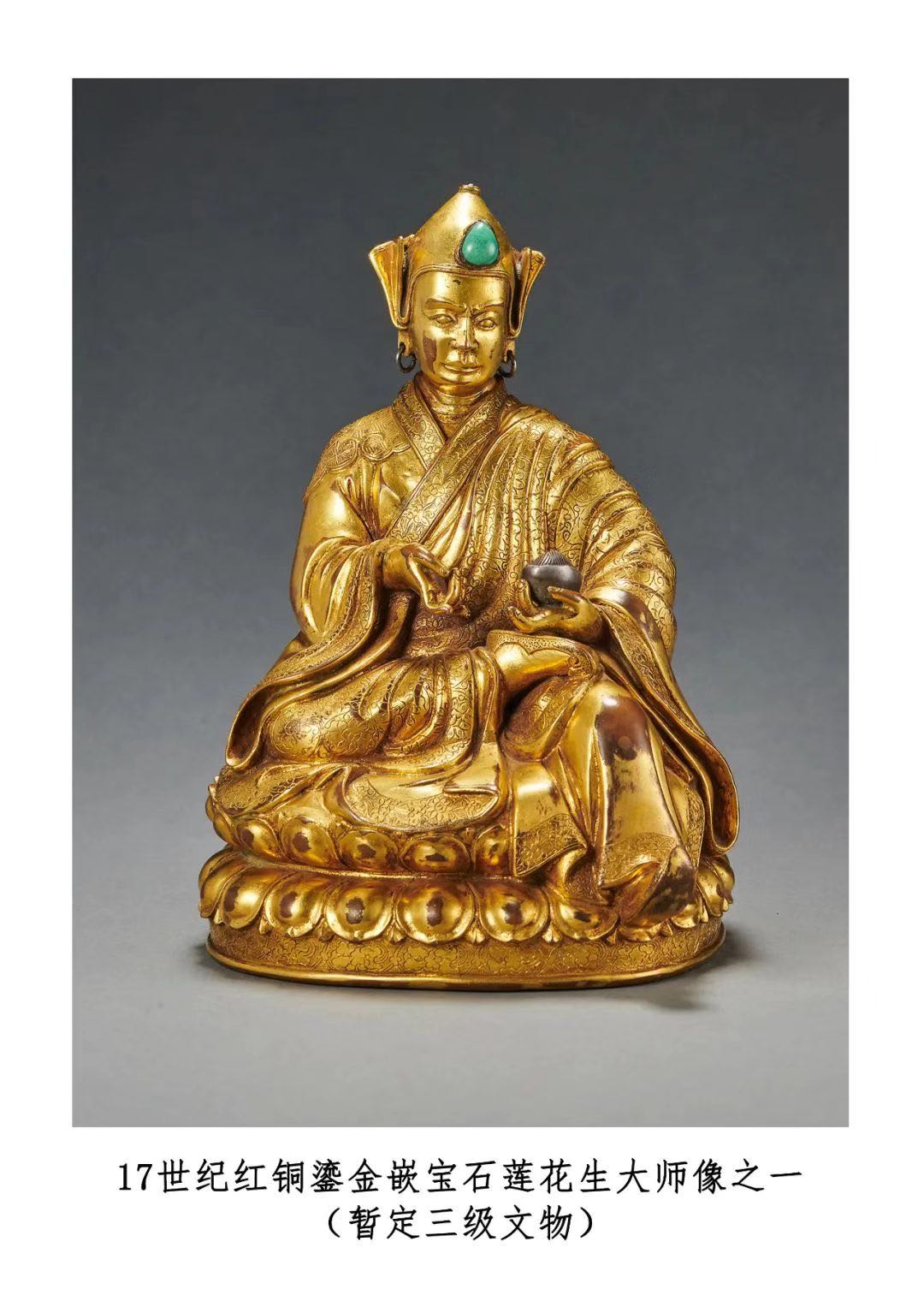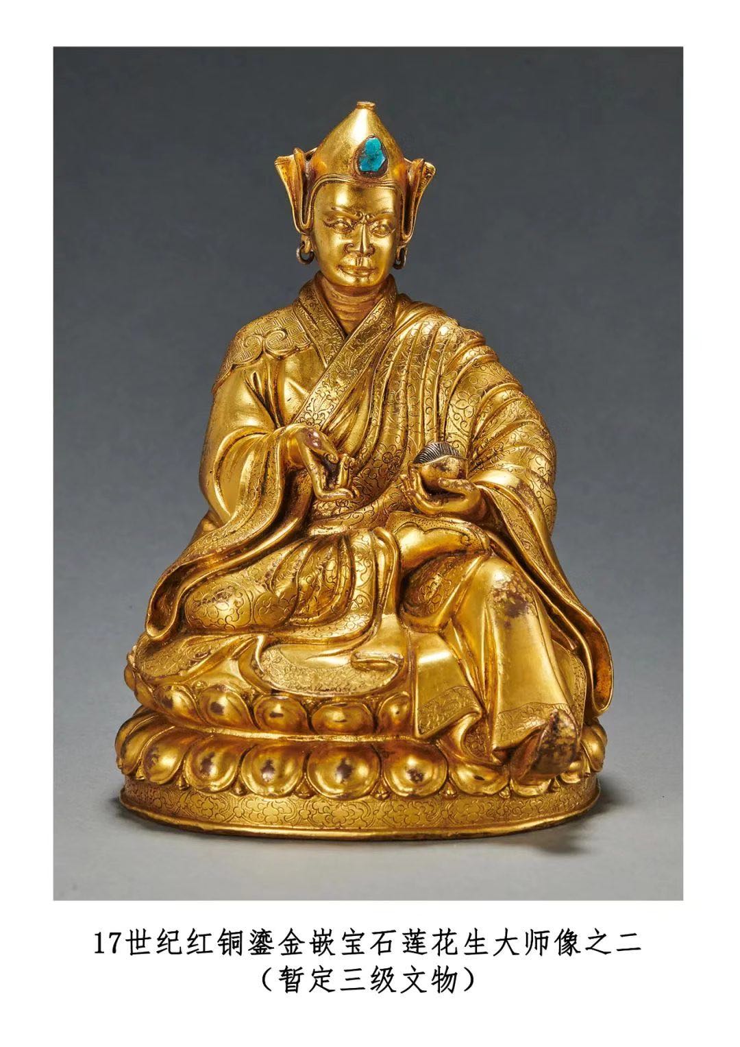 17世纪红铜鎏金嵌宝石莲花生大师像之一 暂定三级文物 罗征 摄 国家文物局供图