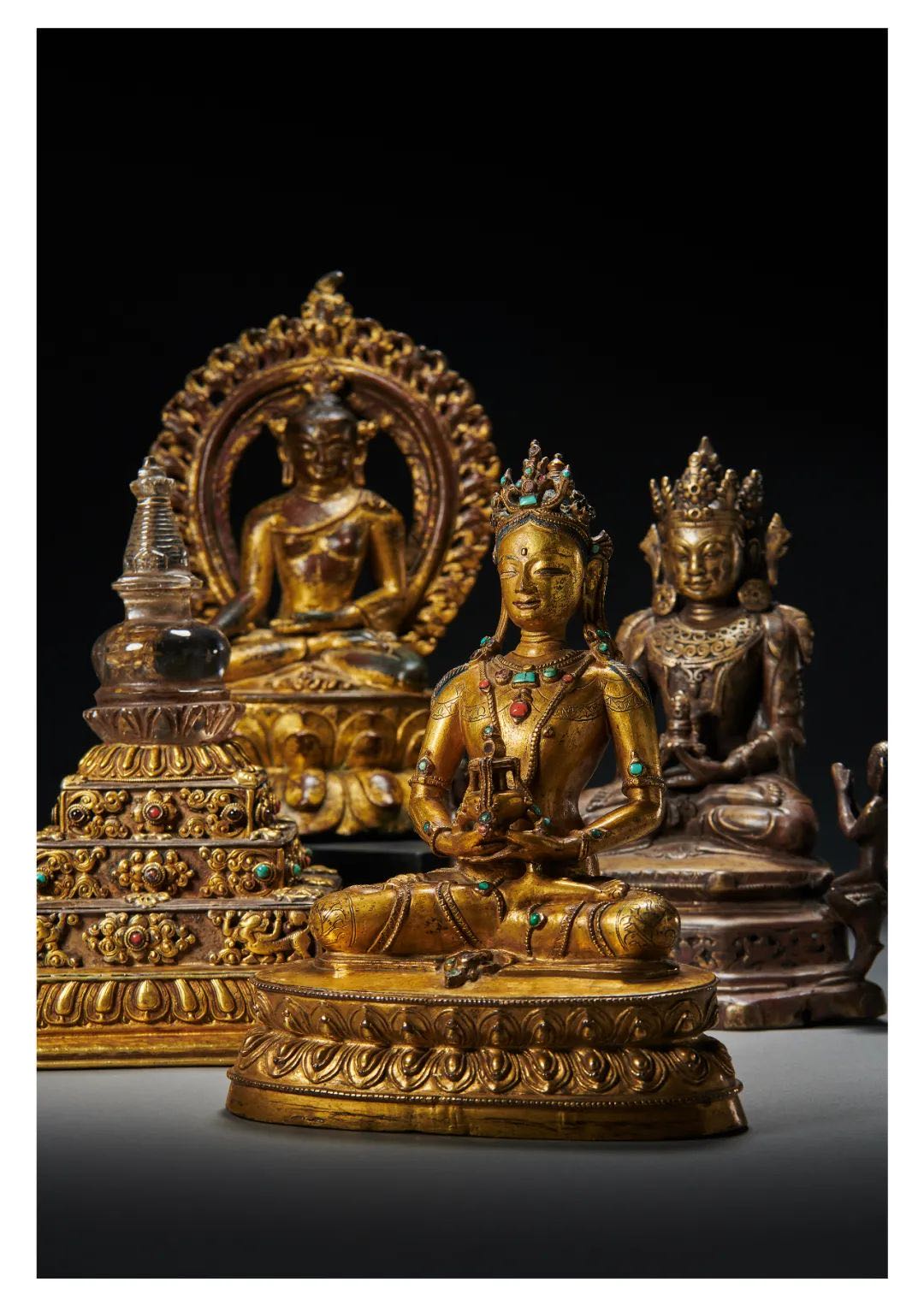 澎湃新闻9月26日获悉,国家文物局今年从美国成功追索回国的12件文物艺术品,整体划拨西藏博物馆。其中珍贵文物6件,一般文物2件。包括有金铜佛造像、铜鎏金水晶嵌宝石供养塔等,尤其1尊明末清初的黄铜同侍从无量寿佛造像,呈现出显著汉藏融合风格,其六面形台座多见于汉藏风格唐卡与壁画,在铜造像中较为罕见。