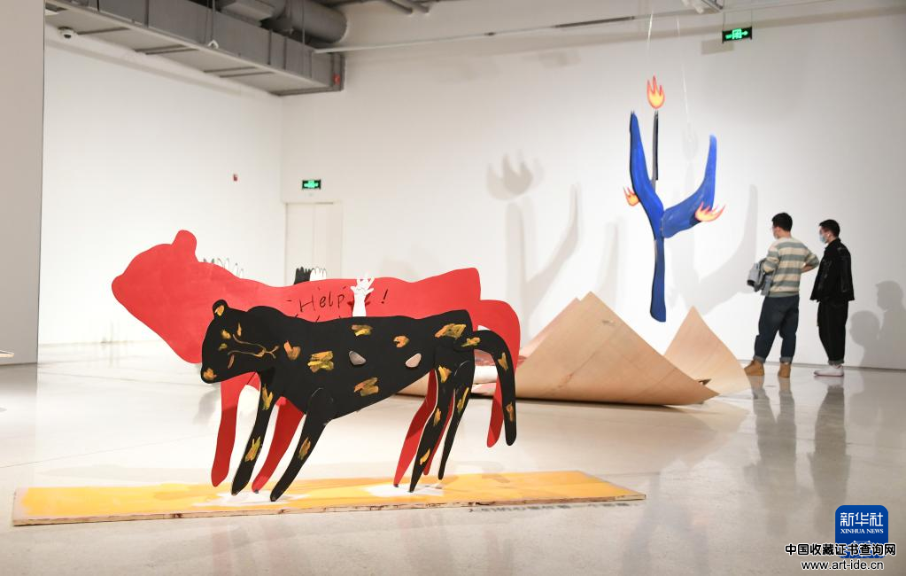 10月16日,人们在北京时代美术馆参观“潮极玩家——潮流艺术大展”。近日,“潮极玩家——潮流艺术大展”在位于北京市海淀区的北京时代美术馆开幕。据了解,本次展览共展出30余名艺术家的近90件艺术作品,展览将持续至11月14日。新华社记者 任超 摄