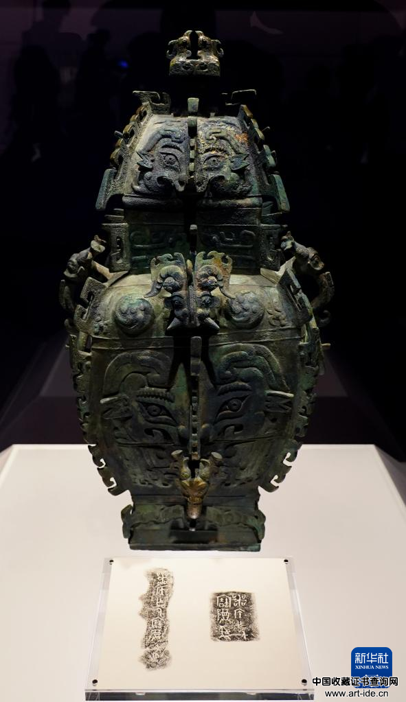 这是上海博物馆“汉淮传奇——噩国青铜器精粹展”展出的噩侯方罍(10月19日摄)。 新华社记者 任珑 摄