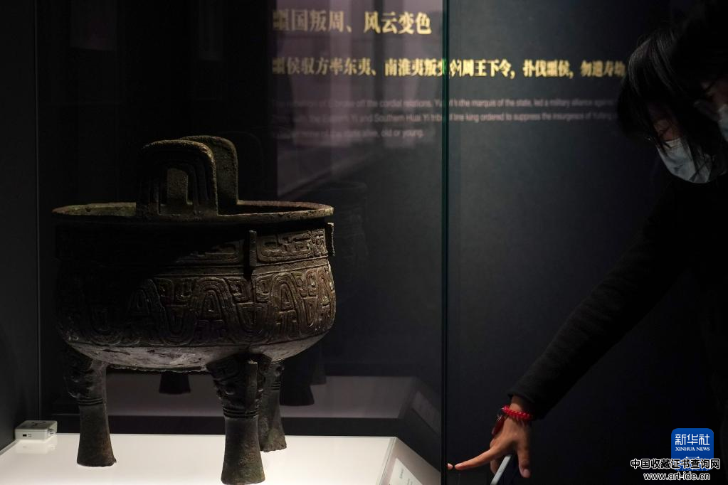2021年10月19日,“汉淮传奇——噩国青铜器精粹展”在上海博物馆开幕。展览聚集了国家博物馆、上海博物馆、随州市博物馆、郑州博物馆、南阳市文物考古研究所等所藏的60件精选噩国青铜器,时间跨度自西周早期至春秋早期。 新华社记者 任珑 摄