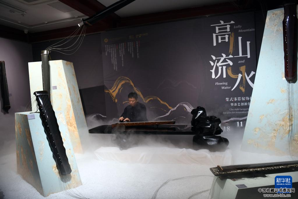 2021年10月18日,“高山流水——楚式漆器髹饰技艺暨漆艺创新作品展”在文化和旅游部恭王府博物馆开幕。本次展览以“高山流水”为主题,通过斫琴、上漆等技艺流程,向观众展示漆器髹饰技艺的魅力。 新华社记者金良快摄
