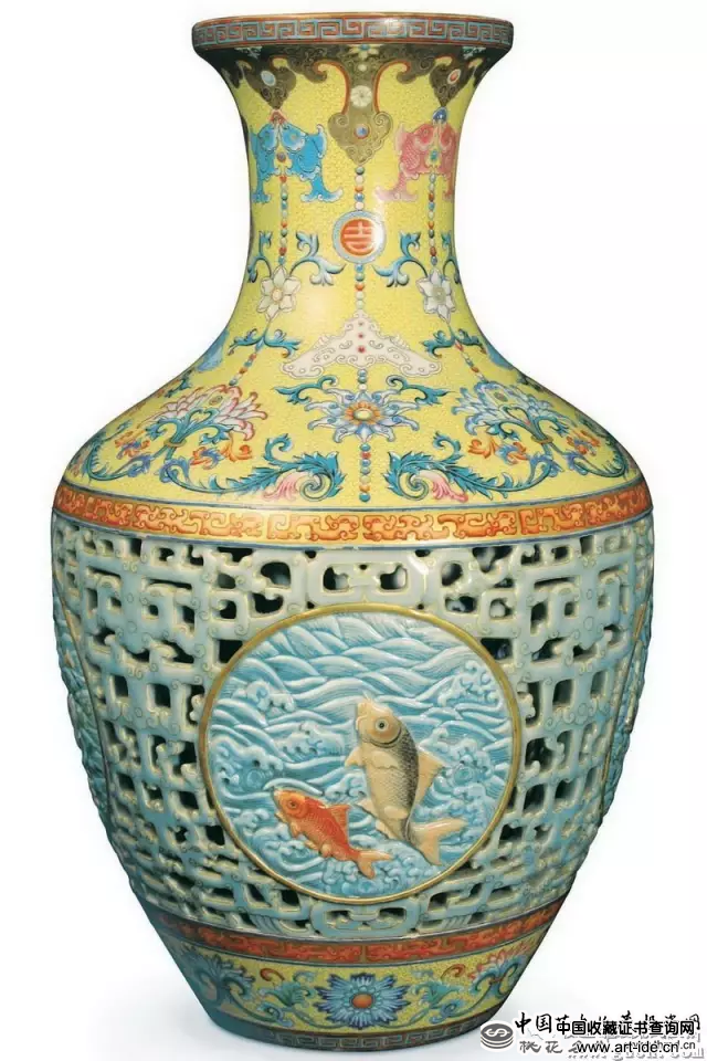 这一清乾隆粉彩镂空瓷瓶是由伦敦一对中年兄妹在收拾已故父母的旧宅时发现的,在其家中收藏已约70年。拍卖行专家认为这个瓷瓶是乾隆三十余年官窑制品,属于皇宫收藏,但他们不知道这个花瓶究竟是怎么到英国的。2010年11月11日的一场拍卖,让伦敦博罗(Borough)区域的Bainbridge拍卖行拍卖中,一个估价80万英镑至120万英镑之间的清乾隆粉彩镂空瓷瓶以5160万英镑(约5.5亿人民币)的价格成交,刷新了2010年6月由黄庭坚书法《砥柱铭》创下的纪录,成为最新的中国最贵艺术品。