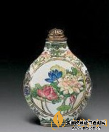 3、清康熙御制铜胎画珐琅莲池图鼻烟壶