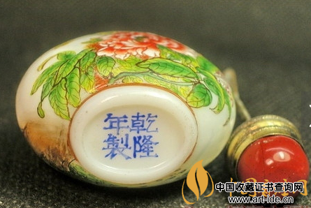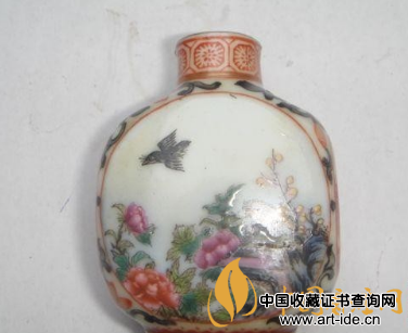 4、清乾隆御制白料珐琅彩牡丹翠鸟鼻烟壶