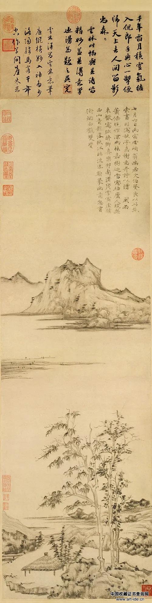 元 倪瓒 秋亭嘉树图 纸本 114×34.3cm