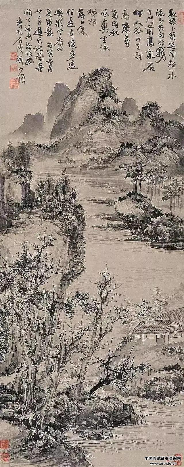 元 倪瓒 松林亭子轴 绢本 276×74.5cm 台北故宫博物院藏