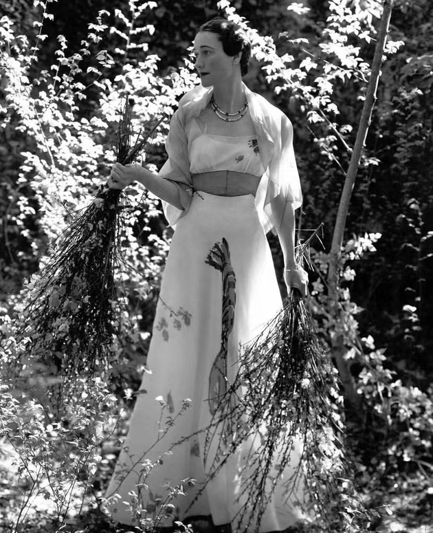 比如这张英国肖像摄影师Cecil Beaton为她拍摄的照片里,沃利斯穿了一身夏帕瑞丽的经典龙虾裙。