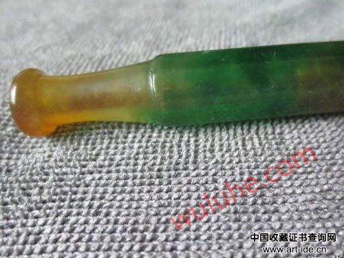 这种东西假的太明显,只要稍微有点常识的人,都不会去上这个当。真正的老翡翠是可以在质检站出鉴定证书的,假的当然是没法出证书的,但卖假货的人会找借口,说老翡翠的检测标准和国标不同,所以出不了证书,这是骗人的鬼话。