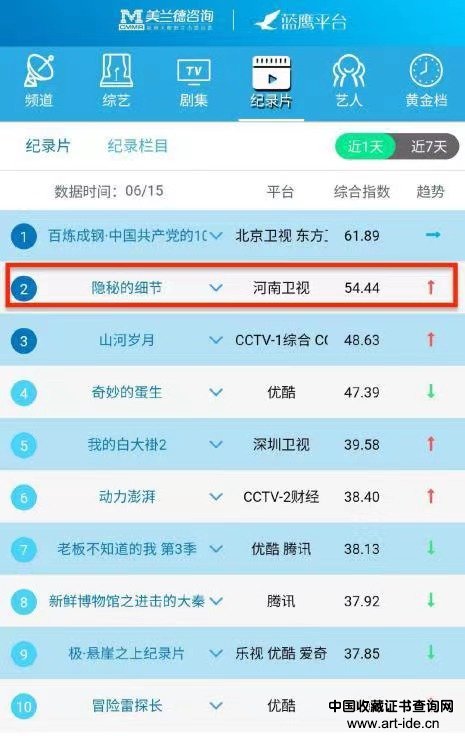 题材的垂直与小众并不意味着播出效果不佳,据有关数据显示,《隐秘的细节》自上线以来收视率及热度值一直稳居各大榜单前列,连续三周强势占据蓝鹰指数纪录片第二位,完全打破了以往文化节目普遍“慢热”的魔咒,在泛娱乐快餐式的娱乐节目中杀出一条道路。优异的收视成绩说明广大观众为节目这种全心全意讲述历史的形式很是买单,真正做到了既完成了突破尝试也收获了口碑热度,在深入了解观看后,观众可以由节目中跨越千年的时间看到中国古代的王朝更迭、生活样貌,同时也可以从历史中积累今天的认知经验,正如节目嘉宾著名哲学家吴伯凡所说:“我们看历史的时候,有时候需要把镜头往后拉,发现那种我们刻意称之为无形之手的东西,正是这些无形之手的动作,构成了我们可能要真正关注的隐秘的细节。”