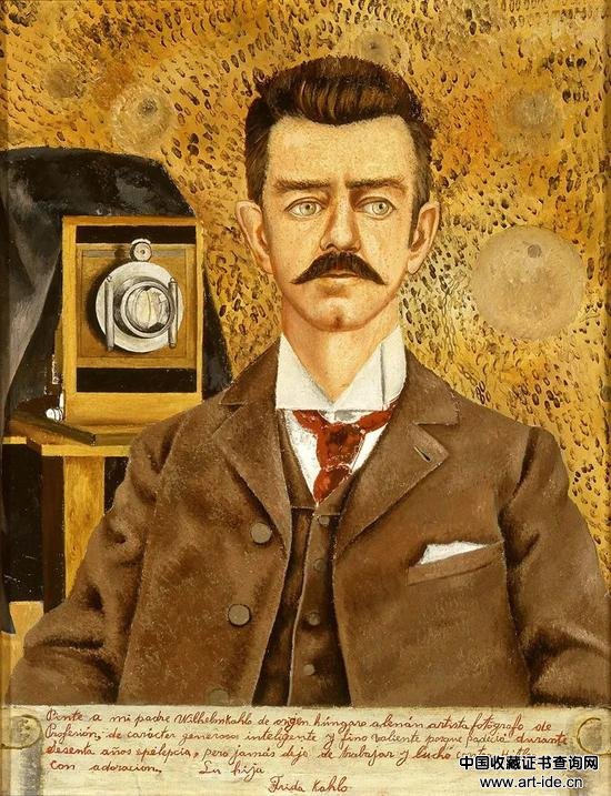 芙烈达·卡萝(Frida Kahlo)的父亲是一名专业摄影师,教会她使用相机,更在她因车祸而要卧床休养数月时,鼓励她绘画。卡萝曾绘画多幅肖像画和自画像,当中便包括这幅描绘父亲的温馨肖像画。