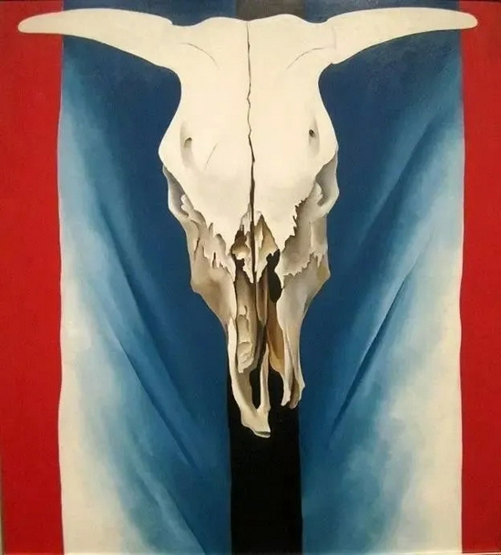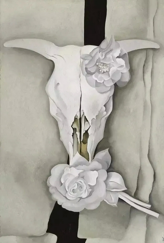 《带布玫瑰的牛骷髅》Cow‘s Skull with Calico Roses,1931