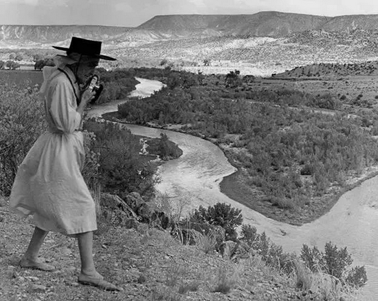 在广袤而粗犷的红色山丘之下,遍布峡谷、沙漠、荒野、岩石。她离群索居,从1949~1986,居于此地长达近40年。